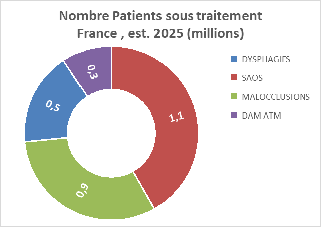 Plus de 30 % de la population souffre de troubles de la langue, notamment de dysphagies, de troubles du sommeil, de malocclusions et de troubles temporo-mandibulaires (TTM). En France seulement, on estime à 4 millions le nombre de patients traités pour ces affections.