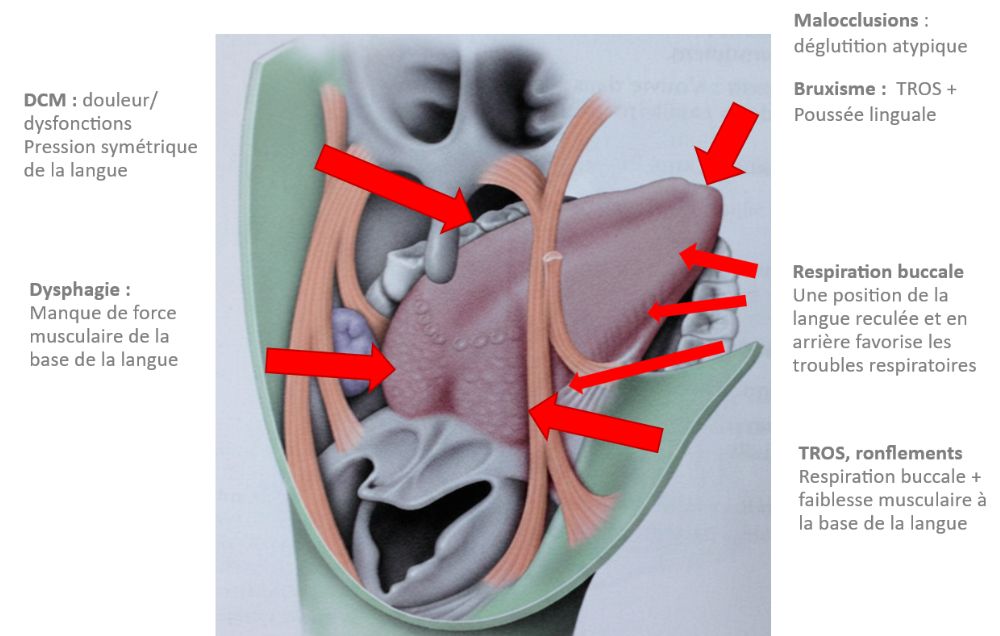 La langue influence également les articulations temporo-mandibulaires (ATM), la croissance du visage et de la mandibule, ainsi que la posture cranio-cervicale. Elle agit donc comme un véritable déterminant majeur de la biomécanique oro-faciale.